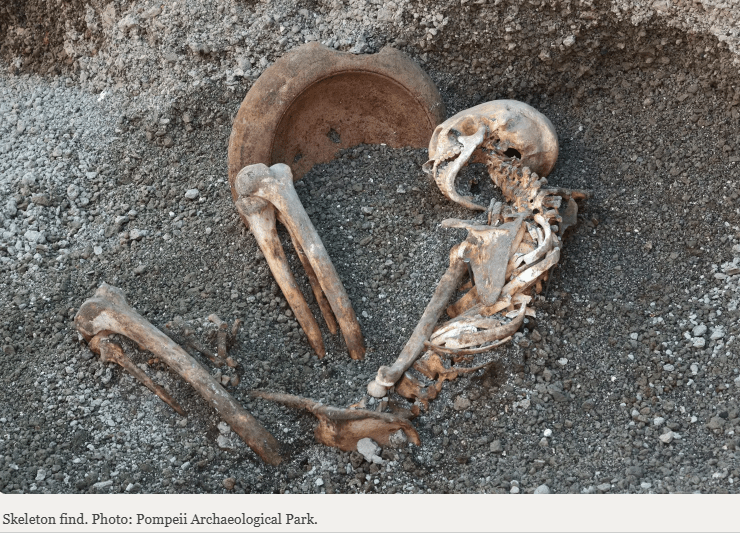 The remains were found outside the city walls at the Porta Stabia necropolis — part of ongoing digs around the tomb of Numerius Agrestinus Equitius Pulcher, a name that sounds like a law firm but was actually just one wealthy Roman’s eternal real estate. Two men were discovered trying to flee toward the coast. Both failed. One was younger, probably killed by a pyroclastic current — a fast-moving cloud of superheated gas and ash that doesn’t negotiate. The other, older, died earlier during a violent lapilli storm, volcanic rock fragments raining down like hail made of lava.