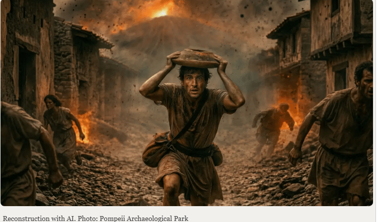 The Pompeii Archaeological Park just rolled out its first Pompeii AI reconstruction — a digital rendering of a man who died during the eruption of Vesuvius in 79 AD, clutching a terracotta mortar over his head like a makeshift helmet. The project, developed with the University of Padua’s Digital Cultural Heritage Lab, combines excavation data, photo editing, and machine learning to show what this guy might’ve looked like in his final moments.